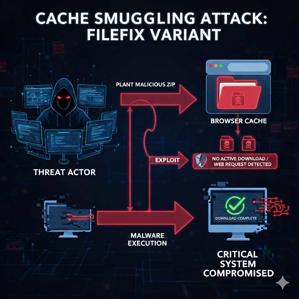 BLUF: Threat actors are using a sophisticated variant of the FileFix social engineering attack, known as cache smuggling. It plants malicious ZIP archives in a victim’s browser cache. This enables execution of malware while bypassing security software checks for active file downloads or web requests.